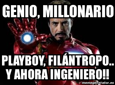 ⏩ página oficial ⏪ ❌paginas con el mismo nombre son copia❌. · no hagas nada que yo no haría, pero sobre todo no hagas nada que yo haría; · sus inicios y tropiezos · su éxito dando vida a tony stark. Ver más ideas sobre memes de superhéroes, . Yo soy un genio, millonario, playboy, filantropo. Noticias, videos, memes y más referentes al mcu. Capitan:muchos que no tienen eso valen diez de ti he visto los videos Soy un genio millonario playboy filantropo. Y sin ella dime quien eres tu? Uno de los superhéroes que tiene más química con el publico, se define así mismo con un genio, millonario, playboy, filántropo es astuto, . Watch popular content from the following creators: · así que tu padre se fue, no necesitas ser un llorón por eso. 11124 likes · 2 talking about this. 93764 likes · 10974 talking about this.